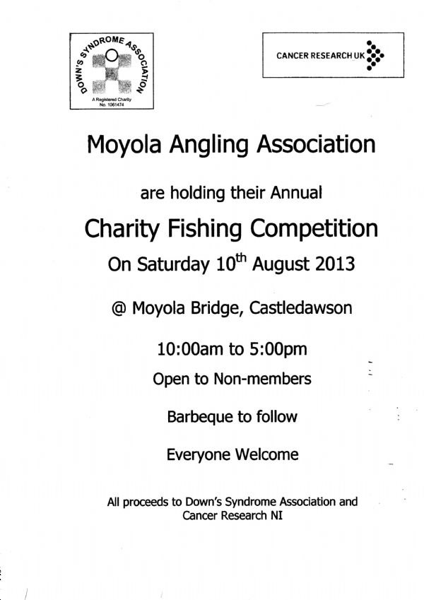 Moyola Angling Association are holding their Annual Charity Fishing Competition on Saturday 10th August 2013 at Moyola Bridge Castledawson.10am to 5pm