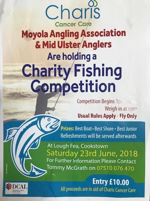 Annual Charis Competition.Moyola Angling Association and Mid Ulster Anglers are holding a charity fishing Competition on Saturday 23rd June at Lough Fea.