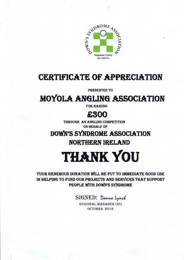 Club news: A Thank you from the Downs Syndrome Association.