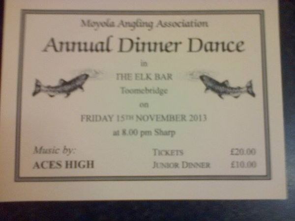 The Annual Dinner Dance takes place on Friday 15th November 2013 at 8pm sharp in the Elk Bar Toomebridge.
